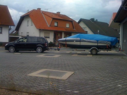 Noch schnell einen neuen Trailer und einen stärkeren Motor ( 30 PS ) ,